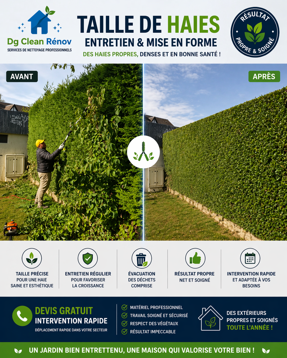 Nettoyage complet du terrain après intervention Travail propre et rapide Sécurité, efficacité et résultat impeccable